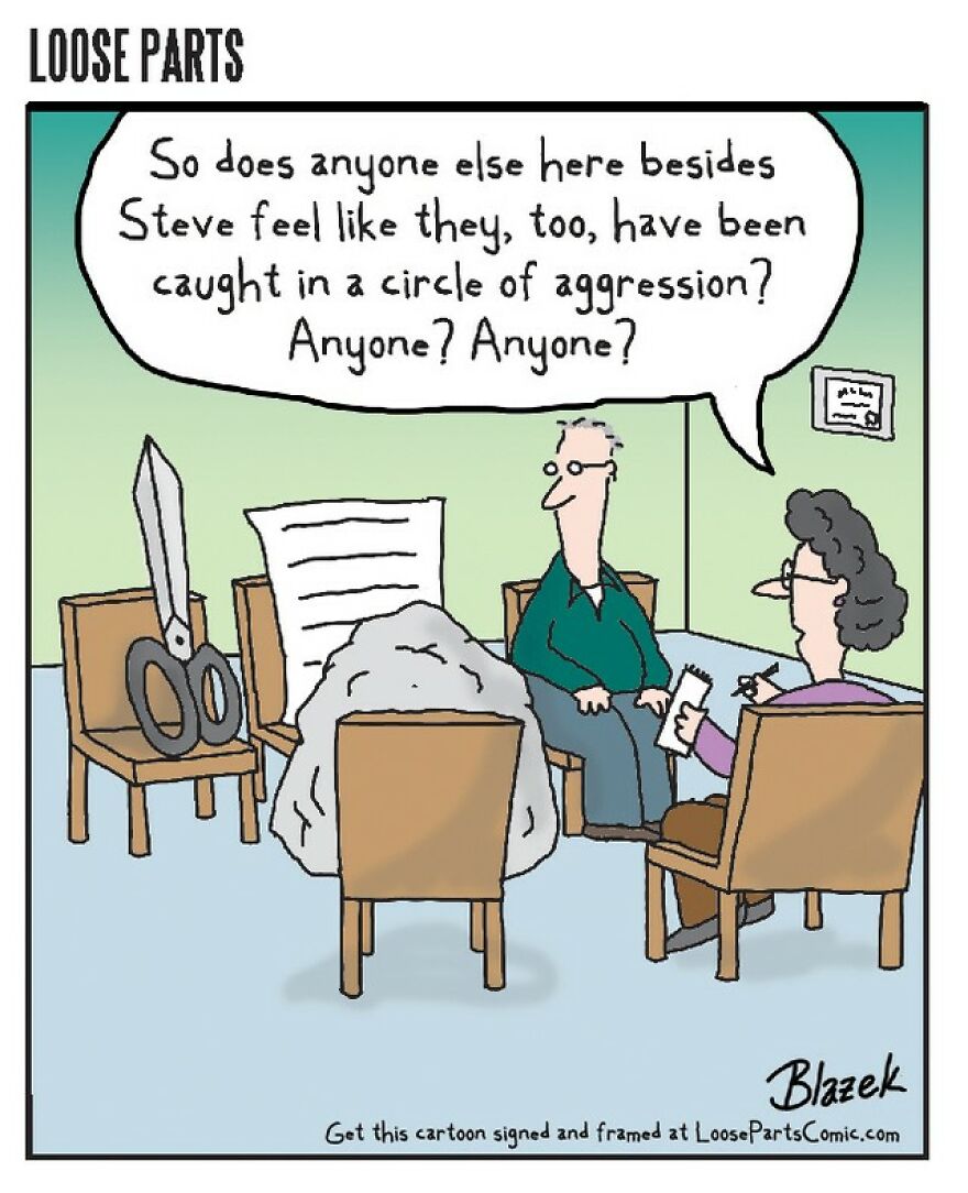 In our previous post, we featured an interview with Dave, where we learned more about his background, creative process, style evolution, and many other interesting topics. Be sure to catch up and check out those earlier publications. If you’re already up to date with all the information about the artist, scroll down to explore the new strips we’ve selected for you today. Also, keep reading our article to find out what Blazek shared with us this time.rself in the world of “Loose Parts” and experience the smart, engaging humor that only Dave Blazek can deliver. More info: Instagram | loosepartscomic.com | Facebook | x.com Follow Bored Panda on Google News! Follow us on Flipboard.com/@boredpanda! Please use high-res photos without watermarks Ooops! Your image is too large, maximum file size is 8 MB.