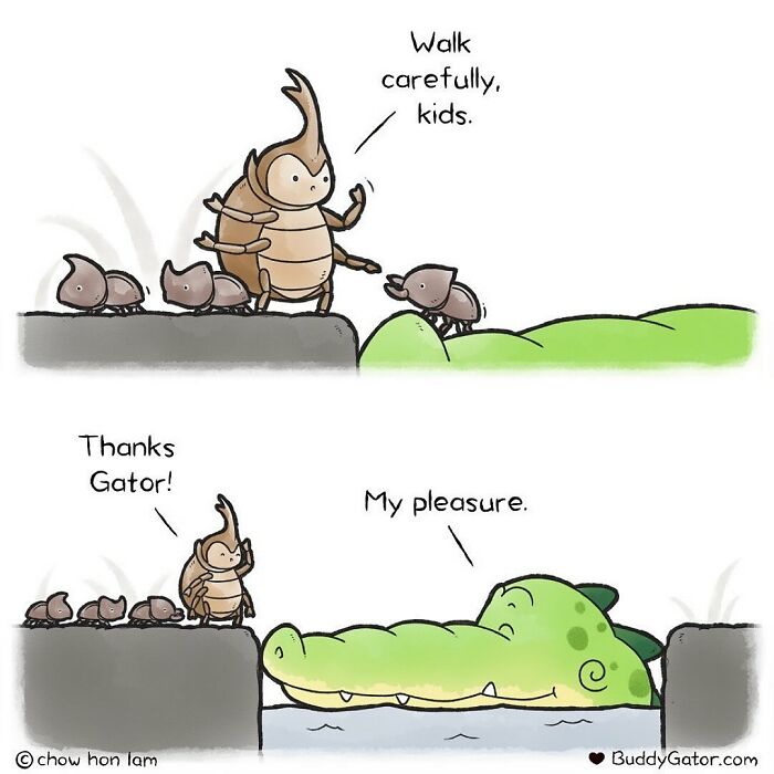 “I created a heartwarming comic about an alligator called ‘Buddy Gator’ to spread positive vibes. Buddy Gator is a good and friendly alligator. Maybe we all need a buddy like him when we’re having difficulties,” the artist shared with Bored Panda. More info: Instagram | buddygator.com | twitter.com | Facebook “In Buddy Gator’s world, you will see everyone being friendly and supporting each other. I hope the comic can bring a bit of positive energy to our real world and make it a better place.” Follow Bored Panda on Google News! Follow us on Flipboard.com/@boredpanda! Please use high-res photos without watermarks Ooops! Your image is too large, maximum file size is 8 MB.