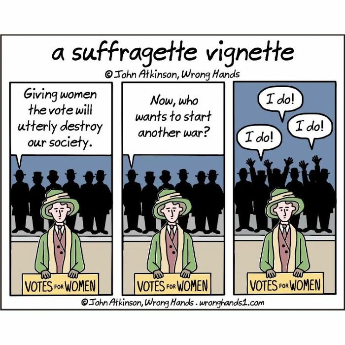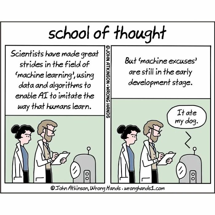 “Cartooning is a great way to extract the silliness bottled up in my head. Humor is subjective so it’s always interesting to read other people’s reactions to my work. I get a wide range of comments from ‘This is hilarious’ to ‘You think you’re so clever, you’re not!’ to ‘I don’t get it.’ The last one is always my favorite. I usually like to respond ‘I don’t get it either’," Atkinson shared with Bored Panda. Scroll down to see the most recent cartoons posted by the artist. More info: Instagram | wronghands1.com | twitter.com | ko-fi.com The digital world makes it that much easier to get your work in front of an audience. In this digital age, all cartoonists basically start out as ‘syndicated’. There’s a built-in worldwide audience accessible through social media to share your work with. It’s up to the online audience to decide if a cartoon is successful or not." Follow Bored Panda on Google News! Follow us on Flipboard.com/@boredpanda! Please use high-res photos without watermarks Ooops! Your image is too large, maximum file size is 8 MB.