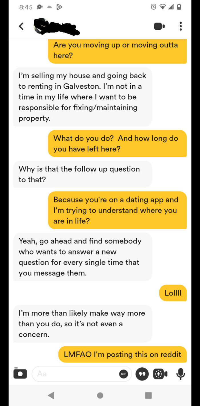 People on today’s list sure have, and they decided to make their interactions public. They shared the text messages they exchanged with the so-called “nice girls” on a subreddit dedicated to exactly that, showing that for some people, being nice is nothing but an act. Scroll down to find netizens’ cases of dealing with “nice girls” in the wild, and see for yourself just how troublesome it can get. Below you will also find Bored Panda’s interview with an assistant professor of health communication at the University of Connecticut, Dr. Elizabeth Hintz, who was kind enough to answer a few of our questions on “nice girls”. Discussing this type of “nice people”, Dr. Elizabeth Hintz pointed out that the “nice girls” concept comes from the “nice guy” concept, which is “something that’s generally [widespread] within the manosphere because it perpetuates harmful ideas about relationships with women (for example, being nice means being entitled to intercourse).” In a recent interview with Bored Panda, the expert noted that this phenomenon is a part of the broader prevalence of ‘men’s rights’ discourse online, which reduces people to overly simplistic and often evolutionary arguments for what constitutes a good relationship. “It’s important to keep in mind that this ‘nice girl,’ ‘nice guy’ phenomenon comes from that system of meaning,” she emphasized. In Hintz’s opinion, social media spreads these harmful ideas about what makes a person valuable or what makes a partner valuable. “These ideas become more normative when they are spread around via the internet or social media.” Take dating apps, for instance; some people spend hours on polishing their account to make a good first impression. After all, the potential match only has a few pictures and a brief comment to browse before making their mind up on which way to swipe. But while it might attract a so-called match, the pictures and the description can only get a person so far. In a piece for BBC, Princeton University Professor of Psychology Alexander Todorov, author of Face Value: The Irresistible Influence of First Impressions, pointed out that pictures might not be worth much when the people start talking. At the end of the day, it’s what they have to say that’s likely to make or break the success of the relationship. “The only way to tell whether two people will really like each other – they have to talk. People don’t make good predictions for compatibility without talking,” Prof. Todorov told BBC. While that doesn’t necessarily mean that they are, they might be somewhat “addicted to drama”. A psychologist and author of Addicted to Drama: Healing Dependency on Crisis and Chaos in Yourself and Others, Dr. Scott Lyons, suggested that there are seven signs that might give away that someone simply can’t live a life without drama. As he points out in a piece for CNBC News, the signs entail them feeling a sense of urgency, using exaggerated language, craving to be the center of attention, retelling stories with unnecessary intensity, focusing on the negative or exhilarating elements of other people’s lives, being way too preoccupied with—or even stuck in—their own story, and feeling a lack of control. Follow Bored Panda on Google News! Follow us on Flipboard.com/@boredpanda! Please use high-res photos without watermarks Ooops! Your image is too large, maximum file size is 8 MB.