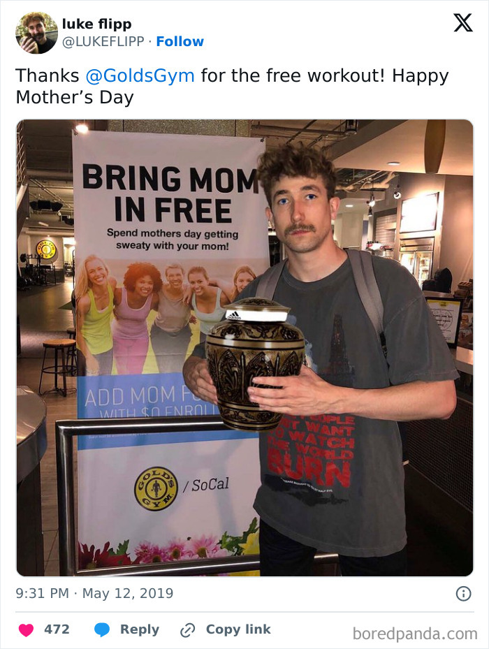 If you fit this definition, you may get a kick from the ‘Do You Even Lift’ Instagram account. Here, you’ll find memes, social media posts, and videos poking fun at missed leg days, protein shake recipes, calorie tracking, and bulking up. For today’s list, we’ve collected some of the funniest and perhaps most relatable still images from the page. These may speak to you if you consider yourself a full-fledged gym rat and health buff. “This … evolution of fitness particularly on [Instagram and TikTok] in recent years has become very bad taste in my opinion,” Snowden told Young Post in a 2022 interview. A 2021 review revealed that bigorexia, otherwise known as Adonis complex, mainly affects men. Overall, their obsession with following a strenuous workout routine adversely affects their health and social life. In an interview with Vogue India, Dr. Bamford explained that an all-consuming preoccupation with exercise that doesn’t meet self-imposed fitness goals may lead to anxiety and a sense of inadequacy, which can become problematic in the long run. And if you’re going through bouts of anxiety and self-questioning, Snowden advises seeking assistance from a professional who can properly evaluate your fitness goals. “Unless you are a professional athlete, your fitness goal should be to achieve overall health and wellness to enhance your quality of life,” he said. “Think about physical activity as a chance to be silly and playful and an opportunity to have fun and make friends,” Dr. Craddock told Vogue India, adding that following the latest fitness trends and tracking every step you take isn’t always necessary to reap the benefits of exercise. The level of entitlement is strong with this one. Follow Bored Panda on Google News! Follow us on Flipboard.com/@boredpanda! Please use high-res photos without watermarks Ooops! Your image is too large, maximum file size is 8 MB.