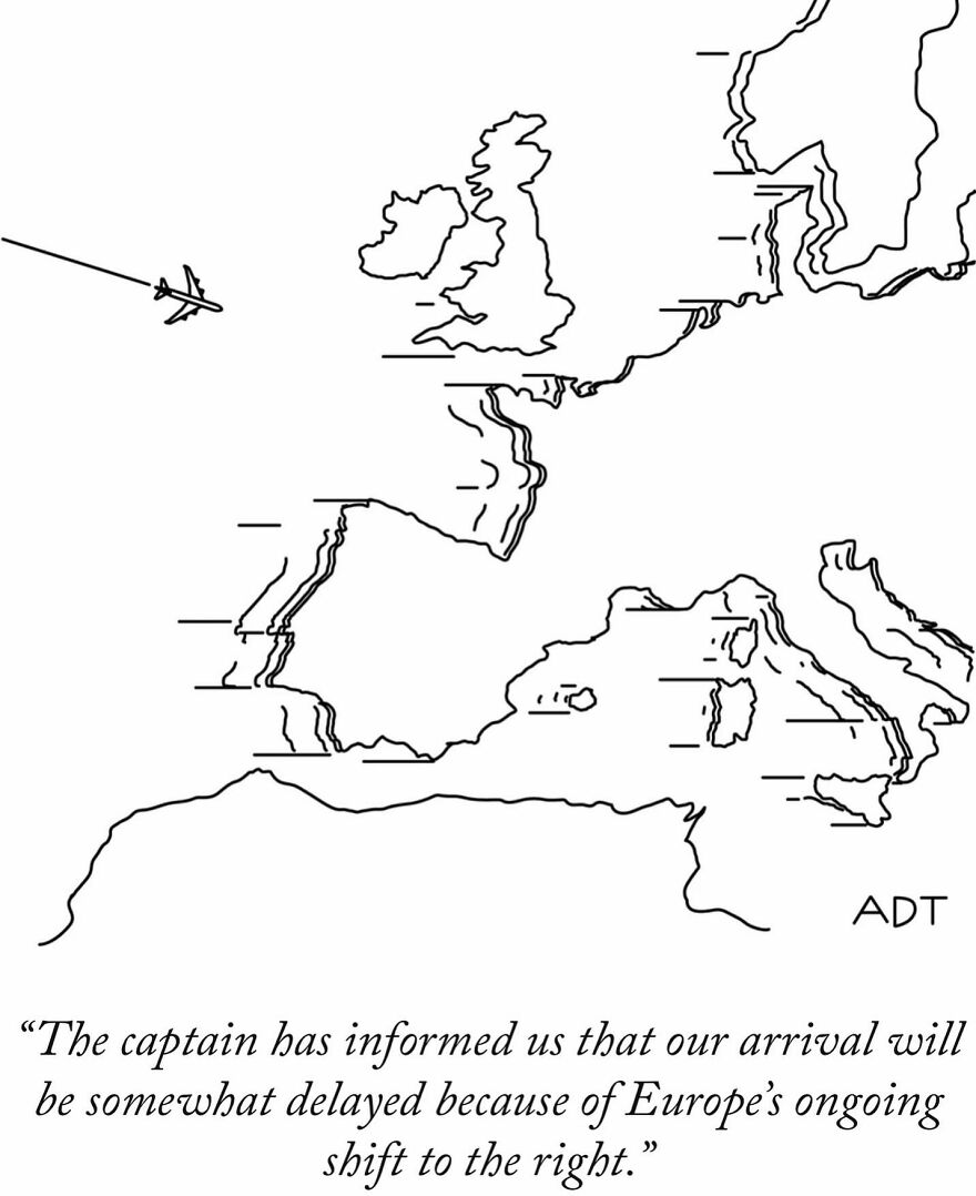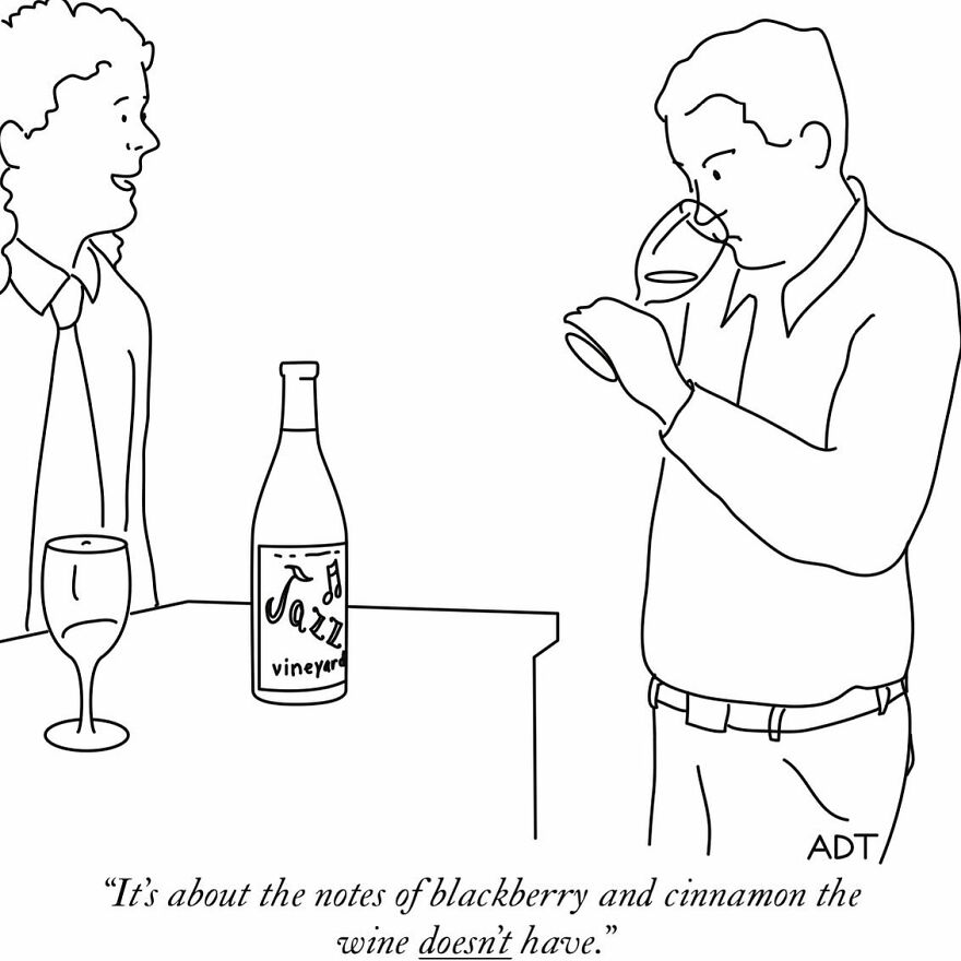 He started drawing and painting at a young age and later shifted from trying to showcase in art galleries to creating funny cartoons. This change led to a successful career. Thompson’s talent for capturing complex ideas in one-frame comics with sharp humor has made him a favorite in both magazines and art galleries. His work continues to entertain and make people think, combining wit and artistic skill that appeals to many. More info: Instagram | adamdouglasthompson.com | x.com “I’ve definitely drawn inspiration from some unexpected places for my cartoons,” Adam shared when asked about unusual sources of inspiration. “There was this one time when I was waiting at the DMV, surrounded by grumpy people and outdated magazines. The whole atmosphere just screamed comic potential. I started doodling on a scrap piece of paper, and before I knew it, I had a sketch that turned into a New Yorker submission. It was all about the absurdity of bureaucratic processes, something we can all relate to, right?” Follow Bored Panda on Google News! Follow us on Flipboard.com/@boredpanda! Please use high-res photos without watermarks Ooops! Your image is too large, maximum file size is 8 MB.