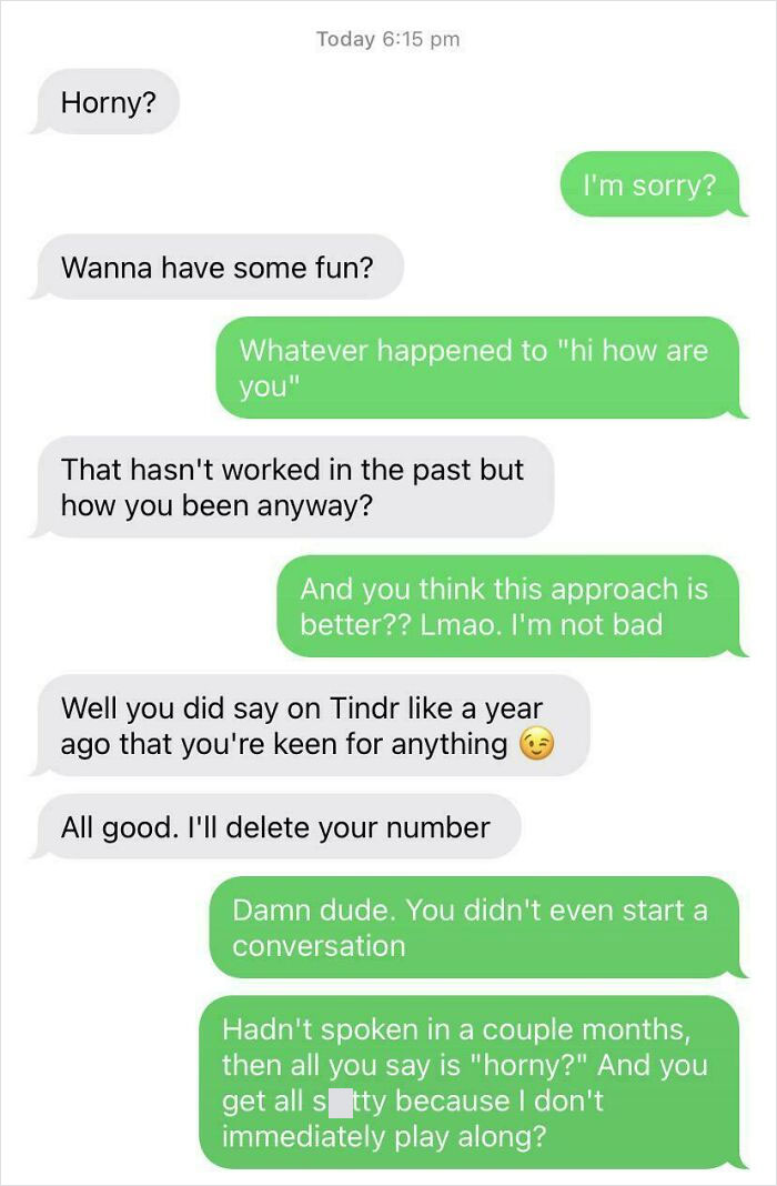 Below, you’ll find a list of screenshots featuring interactions with people who should definitely remove themselves from the dating pool. From messages that make no sense to remarks that are outright mean, these posts might make you relieved to be single. Be sure to upvote the messages you can’t believe people actually sent, and keep reading to find conversations with dating coaches Rachel New and Amie Leadingham! “Online dating has opened up opportunities for more people to connect with more people,” the expert shared. “This has lots of good and bad consequences. Shy or socially anxious people get to connect without having to go to parties, people who live in remote areas can connect with people further away, and everyone gets to see profiles of people from different walks of life, a greater range of ages, ethnicities, levels of education, and so on.” “Research shows people mix more through dating apps and that this is good for breaking down barriers of prejudice and making us more open to different cultural norms,” Rachel added. “There are lots of reasons why people can’t connect in the offline world that don’t make them evil or mean: it could be poor social skills, a lack of experience of mixing with others who are different from them, trauma, lack of good role models and attachments growing up, mental health challenges, neurodivergence, or other life challenges,” the expert explained, adding that certainly not all people with those challenges will send problematic messages. “I recommend that people try to meet people both online and offline, to get a healthy balance, especially as we use different parts of the brain when we meet in real life, for example being less likely to judge people by appearance,” the coach says. “Having a short video or phone call to cut down on the messaging before you arrange an in-person date is a good idea too. More people are meeting through social media such as Instagram now, because people’s posts and videos are thought to be more authentic than dating profiles.” “Such people develop survival strategies to protect them from the pain of rejection, such as denigrating the person rejecting them so that their opinion doesn’t matter (like number 24 and 30), or bigging themselves up so they feel less disempowered (like number 8), or having strict deal-breakers (like number 12 and 22),” the expert explained. “They may already feel bad about themselves but keep it buried by treating people badly or getting angry with them.” “If you are the recipient of a string of aggressive or inappropriate messages, it can help to understand it as the person desperately attempting to avoid feel bad about themselves,” Rachel added. If you’re looking for more wise words and dating advice from Rachel, be sure to visit her website or purchase her dating workbook! If you’d like to gain some advice for your own dating life from Amie, be sure to visit her website! Follow Bored Panda on Google News! Follow us on Flipboard.com/@boredpanda! Please use high-res photos without watermarks Ooops! Your image is too large, maximum file size is 8 MB.