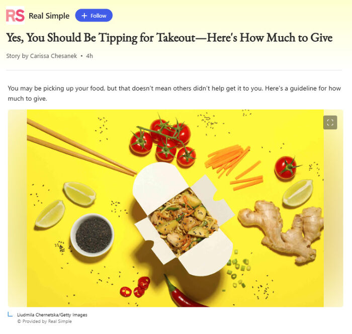 Granted, it’s always been socially acceptable to tip your waiter, valet, or concierge. But with the current trend of ‘tipflation,’ tipping has been expanding into more and more industries. To demonstrate that, we’ve gathered the most absurd and infuriating cases where people had to tip. Do you have an outrageous tipping story, Pandas? And what’s your opinion on the matter: to tip or not to tip? Share your thoughts with us in the comments! Etiquette expert and author of A Traveler’s Passport to Etiquette Lisa Mirza Grotts kindly agreed to lend Bored Panda her expertise. She told us more about the general guidelines for tipping in different service industries. We also had a chat about ’tipping fatigue’ and in what instances it’s okay not to tip. Read her insights below! More info: Lisa Mirza Grotts In addition to her television, radio, newspaper, and online presence, she authored a manners blog for the Huffington Post for eight years. We wanted to know more about the current estimates of tipping and what the tipping etiquette is for classic services such as taxis, restaurant servers, and hotel staff. The etiquette expert says that the typical amount to tip servers at restaurants is 20% of the bill. When it comes to a concierge or a doorman at a hotel, it depends on the special request that they do for you. Whether that’s calling a cab or carrying your luggage up to your room, the nature of the request determines the sum. “As servers are paid a low base pay, a little extra can make a big difference in the time of Covid. The amount all depends on the type of service, but one thing experts all agree on is when in doubt, give, and make sure to have cash on you.” Are there times when not tipping is okay? “Tipping is not allowed at private lunch clubs and country clubs. Also, a tip would not be expected at self-service checkout or for medical appointments, to name a few,” Grotts gives some examples. Another reason for ’tipflation’ is that now it’s much easier to ask for tips. All service industry workers have to do is turn a tablet around. “That person who gave service to you is in front of you and there is this social pressure,” Singh adds. Follow Bored Panda on Google News! Follow us on Flipboard.com/@boredpanda! Please use high-res photos without watermarks Ooops! Your image is too large, maximum file size is 8 MB.
