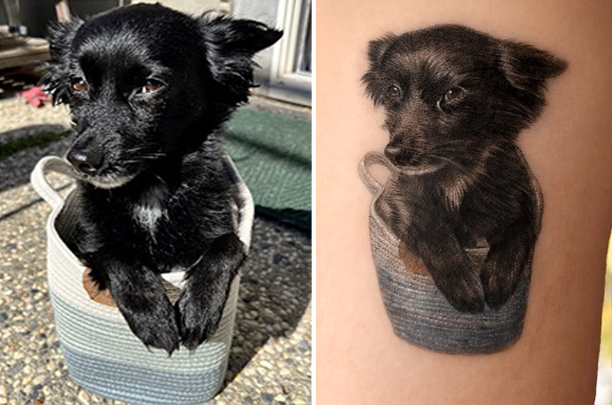 Luckily, Ria Kim, a tattoo artist from Seoul, Korea, specializes in pet portraits, which she also combines with other meaningful details, like paw prints, flowers, and so on. Today, we have selected just a few realistic tattoos from Ria’s huge gallery, which she has curated since 2019, so make sure to see the rest of her works on the artist’s social media accounts. More info: Instagram | Instagram “Ever since I was young, I’ve had a deep love for both animals and art. My journey into tattooing began in 2018, and I soon realized that I wanted to specialize in something that truly resonated with me. In 2019, I decided to focus on pet portraits because it felt like a natural way to combine my passions. Each tattoo allows me to celebrate the bond between people and their pets, which is something I deeply cherish. My own dog, Goboksu, a 15-year-old I rescued from a shelter in Korea, has been a significant part of my inspiration,” wrote Ria. “Every story my clients share is precious, but one couple’s story stands out. They had been together since high school and shared their lives with a dog for over a decade. Sadly, their dog had recently passed away, and they came to me for a portrait tattoo. They told me that their dog was their everything—their life and their world. Their words touched me deeply, more than anything else. Even now, thinking about it brings a pang to my heart. This emotional connection significantly shaped the tattoo. I wanted to capture not just the likeness of their dog but also the profound bond they shared. I focused intensely on the dog’s eyes, aiming to reflect the love and memories they held. The couple’s heartfelt story guided every stroke and detail, ensuring that the tattoo would be a meaningful tribute to their beloved pet,” Ria shared the story. “I deeply empathize with my clients’ stories, especially since I have my own dog, Goboksu. Hearing about their pets, particularly those who have passed away, often brings tears to my eyes. There are times when we cry together during our conversations. Maintaining my composure during sessions is essential, but it can be challenging. Recently, during a session in New York, I couldn’t stop crying while drawing a dog’s eyes. Balancing these emotions with my professional responsibilities is tough, but it’s also what drives me to keep improving my skills and honoring each pet’s memory,” wrote Ria. Follow Bored Panda on Google News! Follow us on Flipboard.com/@boredpanda! Please use high-res photos without watermarks Ooops! Your image is too large, maximum file size is 8 MB.
