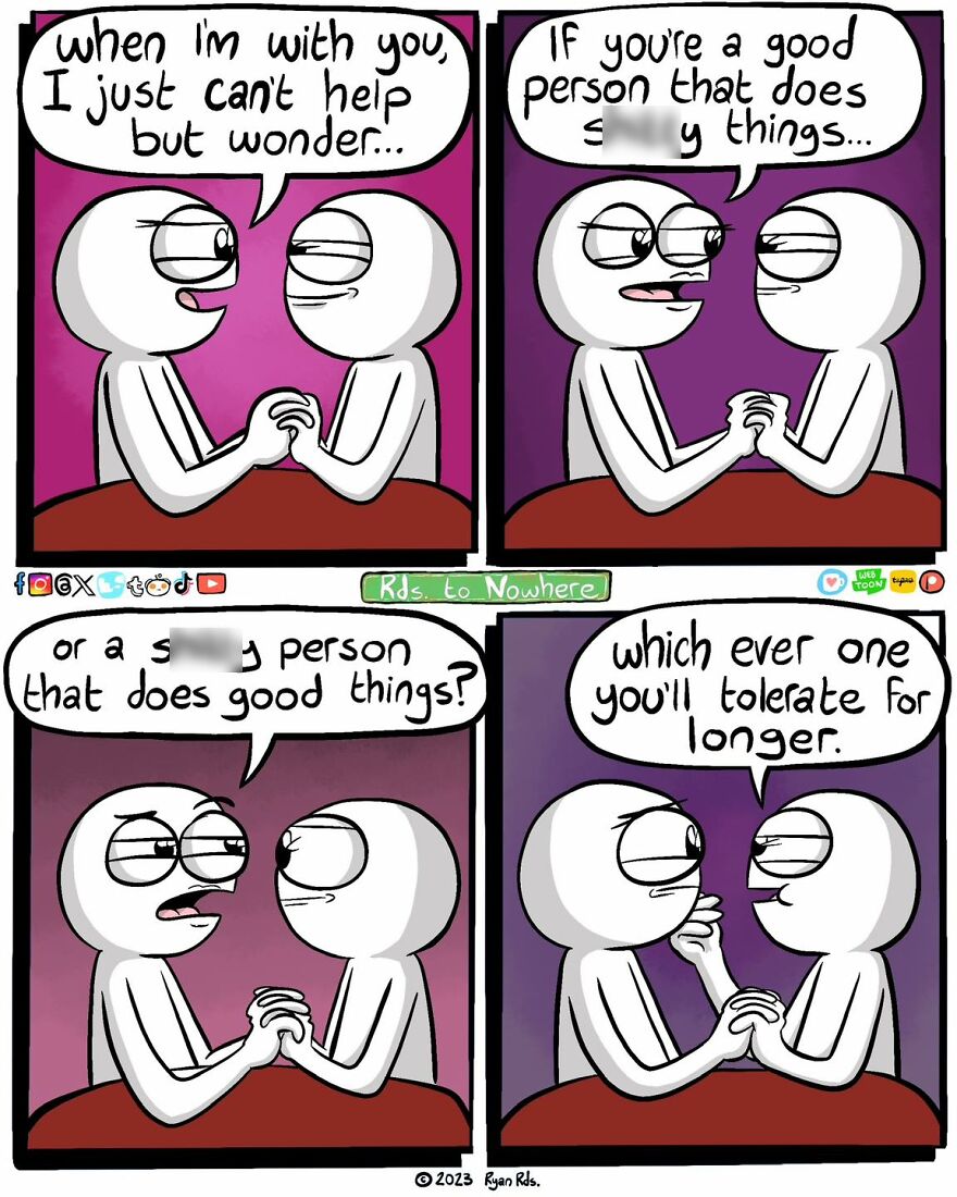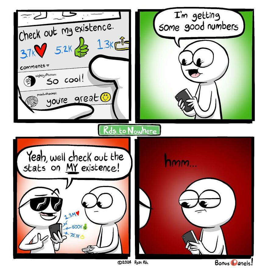 Inspired by the laughter and joy his work brings to people, Ryan has developed a comic style that is both relatable and entertaining, touching on everyday situations with a twist of absurdity and irony. His commitment to quality over quantity has seen his art evolve significantly, with a focus on enhancing the artwork through shading, color, and the delivery of writing. Ryan Rd’s comics offer a fresh and humorous perspective on life, making him a beloved figure among webcomic enthusiasts. More info: Instagram | reddit.com | Facebook | redbubble.com First, we talked to the artist a little bit about his workflow and schedule, here’s what Ryan shared, “I would say I’ve streamlined my workflow pretty well at this point. Once I complete all the ‘stages’ (sketches, linework, color, shading & a background), I put it in the ‘ready to post’ pile. As to actually ‘when’ I post, I mostly just feel out the comic’s general aura, if it’s got a beginning-of-week or end-of-week vibe to it.” Follow Bored Panda on Google News! Follow us on Flipboard.com/@boredpanda! Please use high-res photos without watermarks Ooops! Your image is too large, maximum file size is 8 MB.