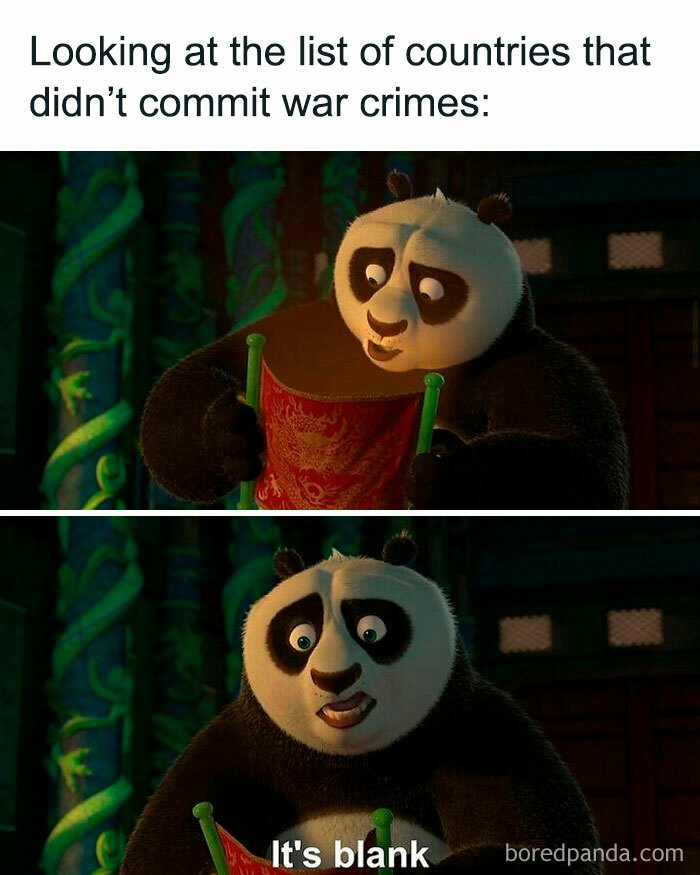 Throughout history, people have been poking fun at the past. From ancient battles to the more modern conflicts, they’ve somehow found a way to add a dose of humor to the darkest of times. Dark humor is an acquired taste. Not everyone appreciates it. However, some might be surprised to learn that a love of dark humor can be linked to higher intelligence. That’s according to this research paper. If you love a good, twisted meme and making fun of the times that came before us, you’re in for a treat. The Instagram page darkhistorymemes has over 150 thousand followers, all looking to satisfy their sick sense of humor and inject some fun into history. Keep scrolling for some of Bored Panda’s favorite memes from the page, and don’t forget to upvote yours. The dictionary also notes that “Black humor is a kind of comedy that jokes about serious or depressing topics, such as hopelessness, suffering, or death. The ‘black’ in ‘black humor’ refers to the dark or depressing subject matter that is central to such comedy.” “The final group reported the highest appreciation of black humor. This group was found to have higher verbal and nonverbal intelligence levels, but had the lowest levels of aggression amongst the 3 groups.” Follow Bored Panda on Google News! Follow us on Flipboard.com/@boredpanda! Please use high-res photos without watermarks Ooops! Your image is too large, maximum file size is 8 MB.