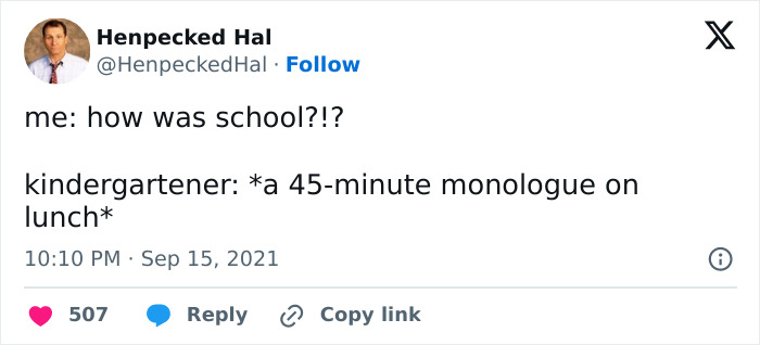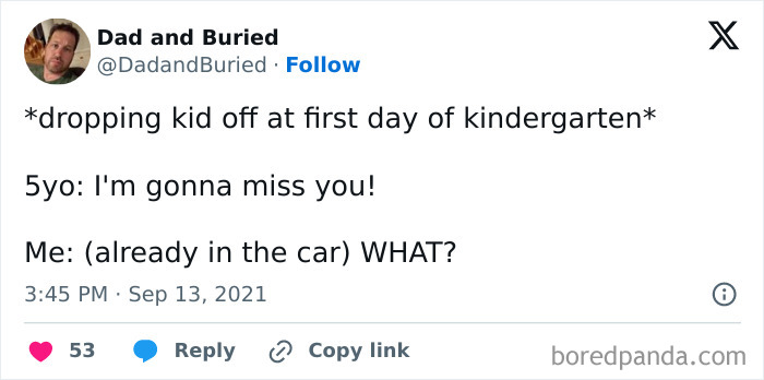 In doing so, they may encounter a snag or two, which can be slightly tense. Instead, many found the humor in the situation and shared it online for a few wholesome laughs. As always, we’ve compiled some of the best stories. If you’re a parent dealing with PTA emails, the contents of your kid’s lunchbox, and what they want to wear on the first day, kudos. Take your much-deserved breather and enjoy reading these posts, which you may instantly connect with. Start cutting back on TV time at night and getting them used to waking up early again. Aramyan recommends implementing these slow changes two weeks before school begins to give them enough time to adapt to the routine. Aramyan advises parents to remind their kids that mommy or daddy will pick them up after. She says one important thing to remember is “to vocalize that every single day.” “The more practice children have, the better they can be at navigating social skills, friendships, and how to deal with bullying,” Dr. Gomez told CBS News. Prevention is always the best solution, and Dr. Gomez urges parents to educate their children about setting boundaries and when to raise their concerns. If your kid has experienced bullying, Dr. Gomez emphasized the importance of being there for them. She suggests asking questions to genuinely learn about their school life instead of giving lectures. Mi kids were amazing until they went to school. There people turn into the upsidedown version of themselves and learn to lie Follow Bored Panda on Google News! Follow us on Flipboard.com/@boredpanda! Please use high-res photos without watermarks Ooops! Your image is too large, maximum file size is 8 MB.