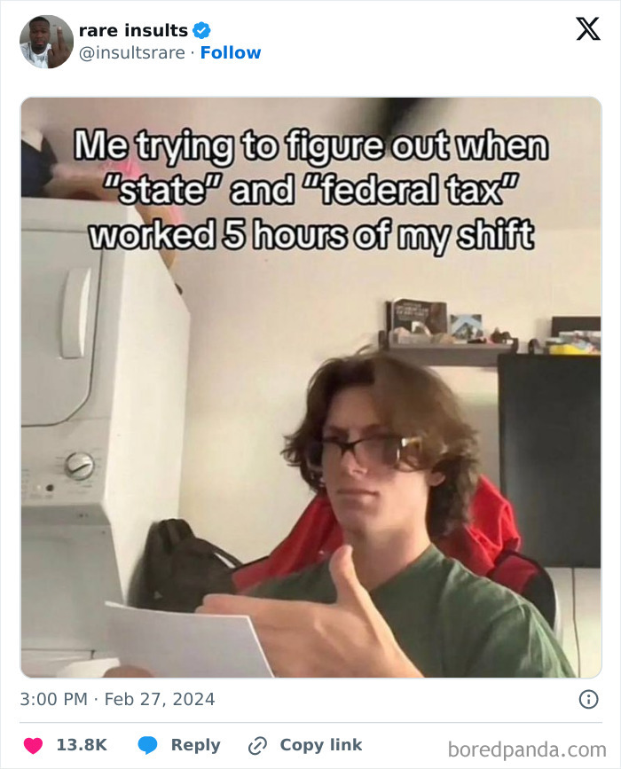 Plenty of such comments can be found on the X (formerly Twitter) page ‘Rare Insults’, some of which we have put on this list for you today. Scroll down to find the applause-worthy responses and see for yourself just how creative and witty some netizens can be. And while these unique insults are not all too hurtful, many comments online are. As a matter of fact, nearly a quarter of netizens have reportedly left a malicious comment on the net, with 18 to 34-year-olds being the most keen on arguing in the comment section. Summarizing the findings of numerous studies on humor, the research publisher Frontiers emphasized that people from different cultural backgrounds may see humor in different ways; despite humor being a universal human activity, important cultural influences can shape the way humor is used and in what situations it is considered appropriate. In China, for instance, the culture disparages humor and focuses more on restriction and seriousness instead. “Chinese are reluctant to admit they are humorous out of fear of jeopardizing their social status,” Frontiers suggested, adding that people in the country typically don’t consider humor a desirable personality trait. The Brits, often considered to have a rather unique sense of humor, were voted “not as funny as they think”. However, a later poll regarding how funny countries in Europe were deemed Britain worthy of being on the very top of the list. Such an expression, named after the French neurologist Guillaume Duchenne, is evoked by the joint action of two facial muscles: the zygomaticus major muscle responsible for lifting the corners of one’s mouth, and the orbicularis oculi, which raises the cheeks, revealing the laugh lines at the outside corners of one’s eyes. If you’d like to see more of such insults, make sure to check out Bored Panda’s previous edition on the X page here. Follow Bored Panda on Google News! Follow us on Flipboard.com/@boredpanda! Please use high-res photos without watermarks Ooops! Your image is too large, maximum file size is 8 MB.