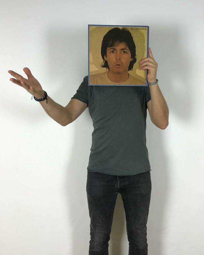 On his separate Instagram account, @tif_the_vinyl_lover, Christof showcases his vast vinyl collection while also getting creative with them. In some posts, Christof imitates the bodies of the faces on album covers while posing in such a way that it aligns perfectly with the artwork. The result is great, and we are sure you will enjoy his creative spin. More info: Instagram | Instagram | Facebook | djtif.de I know it’s only a monochrome photo, but the ethnicity is clearly wrong. Do it properly or not at all. Follow Bored Panda on Google News! Follow us on Flipboard.com/@boredpanda! Please use high-res photos without watermarks Ooops! Your image is too large, maximum file size is 8 MB.