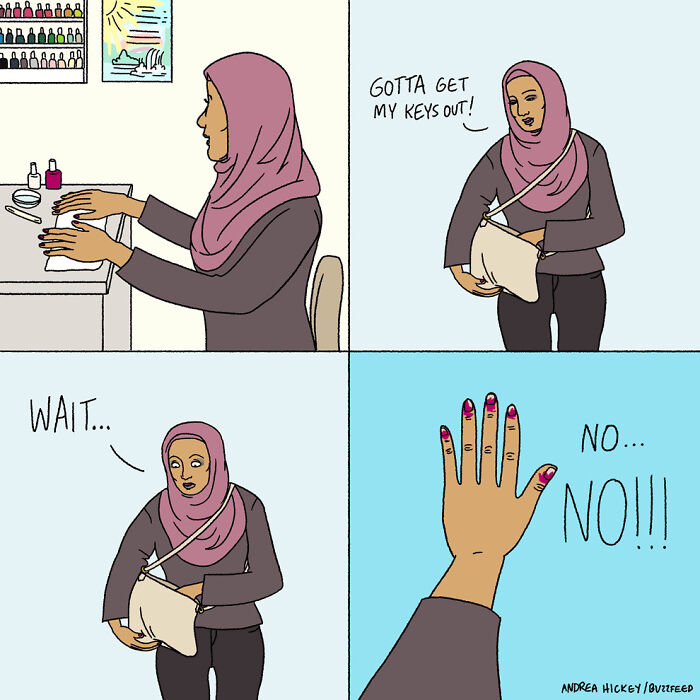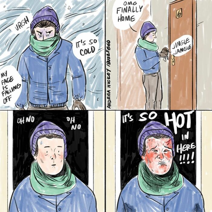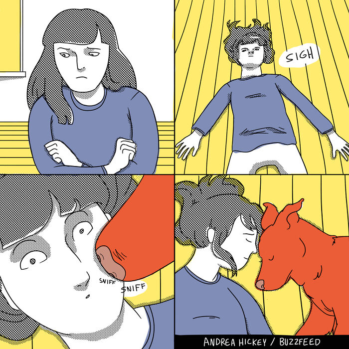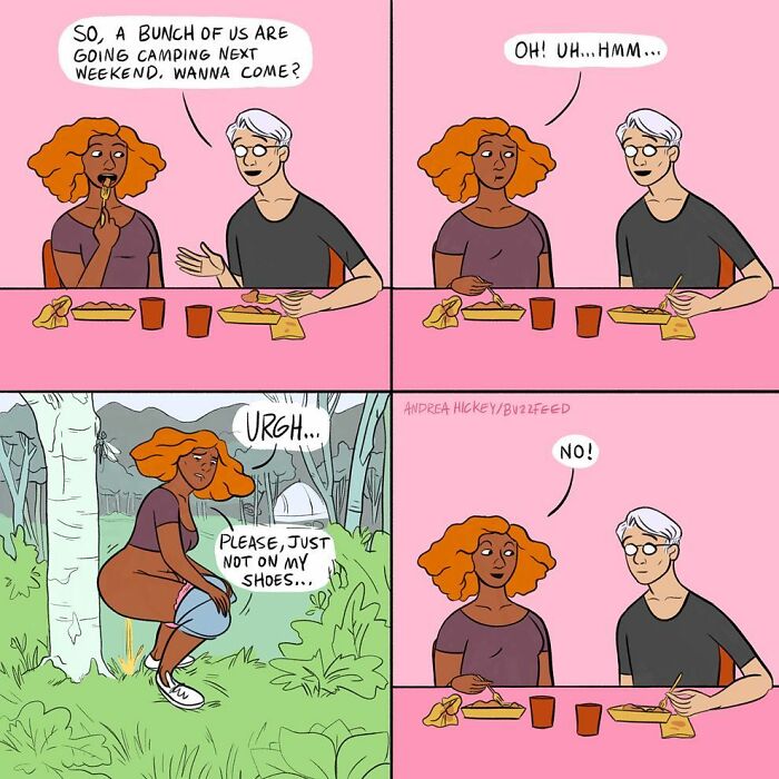 The illustrator shared some of the recurring motifs that appear in her comics: “I liked to touch on awkward social situations, beauty and wellness content, style and relationships. And more broadly, the everyday relatability of being a tired, anxious 20-something.” More info: Instagram | Facebook | andreaghickey.com Follow Bored Panda on Google News! Follow us on Flipboard.com/@boredpanda! Please use high-res photos without watermarks Ooops! Your image is too large, maximum file size is 8 MB.