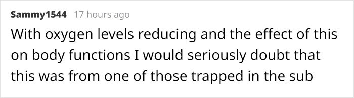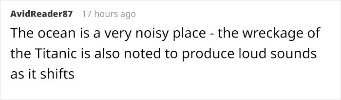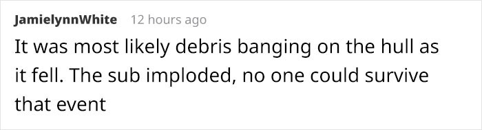 — Gordon’s News (@gordons_news) February 28, 2024 During the search, a U.S. Navy official told CBS News that analysis of the tapping sounds determined they were likely either ocean noise or sounds coming from other search ships. Meanwhile, Chris Parry, a former Royal Navy commander, told TalkTV the sounds could have originated from the Titanic wreck. “You get a lot of mechanical noise in the ocean. Trying to differentiate it from tapping noises is a fool’s errand,” Parry said at the time. The search and rescue mission concluded on June 22, 2023, when a remotely operated underwater vehicle discovered debris of the Titan about 500 yards from the bow of the sunken Titanic. In October, the US Coast Guard informed that “presumed human remains” had been recovered from the sea floor near the debris.
