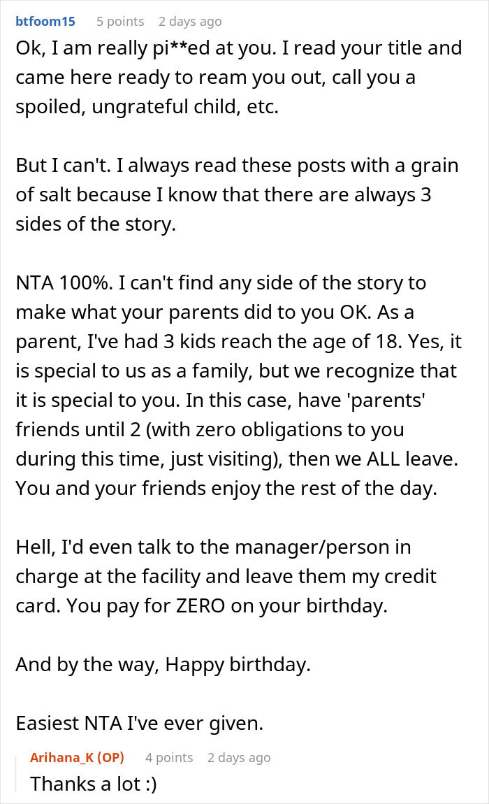 As it turns out, different people experience similar problems, but the heroine of this story of ours, the user u/Arihana_K, is a teen whose mother’s adult friends actually ruined her 18th birthday. However, let’s not get ahead of ourselves. More info: Reddit