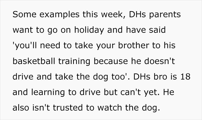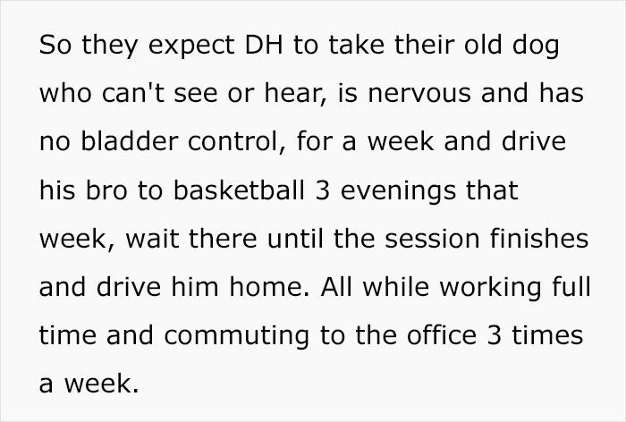 The poster and her husband live close to both their families who constantly demand their help even with the smallest of things