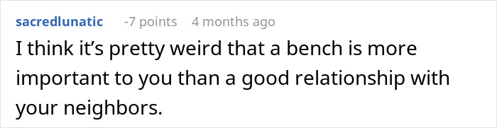 Some others suggested that the woman should have simply returned the bench to her elderly neighbors