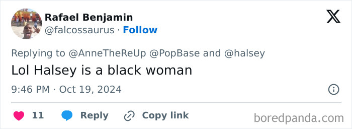 “Why is she cosplaying as a black woman?” one user asked on X after photos of Halsey impersonating the R&B singer in her iconic look from the 2001 album, Aaliyah, were released last Saturday (October 19). Criticism wasn’t universal, however, as many of Halsey’s fans defended her transformation. “People need to stop. Halsey’s half-black herself,” one follower responded while sharing a photo of her African American father, Chris Frangipane. While fans and detractors debated racial sensitivity and cultural appropriation, others dismissed the discussion entirely. “Even if she was fully white, what’s the problem?” a viewer asked, considering the tribute harmless regardless of the races of those involved.