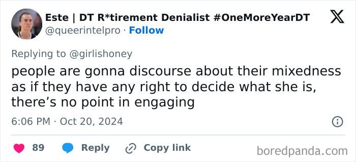 — ms/mess/maker/ 🍏 (@ess_aker) October 20, 2024 Aaliyah’s single, released in May 1998, earned her a Grammy Award nomination for Best Female R&B Performance. Timbaland, who produced the track, added a sample of a baby laughing, which became the song’s trademark. While Halsey’s posts have been littered with comments accusing her of “blackface” and cultural appropriation, her fans have defended her, pointing to her upbringing and parentage.