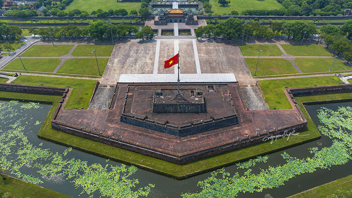 I want to introduce you to this photo collection featuring aerial shots taken with a drone, showcasing angles and frames that depict the solemnity, serenity, and eternal nature of the spiritual world through the architecture of that era. More info: nguyenvuphuoc.com | Facebook | twitter.com For millennia, the profound concept of “sinh kí tử quy” (life-giving, death-receiving) has deeply influenced Chinese emperors, prompting them to prioritize the construction of tombs as their eternal homes in the afterlife. Historical records also note the existence of magnificent tombs in China dating back thousands of years, regarded as wonders of ancient East Asia. Influenced by the longstanding culture of China, tomb architecture appeared early in Vietnam’s history. However, it was not until the Nguyen Dynasty (1802-1945) that tomb architecture became a distinct genre with unique and remarkable achievements. The application of feng shui principles in tomb construction became particularly significant for the dynasties of that era in Vietnam. The construction began in 1814 and was completed in 1820. Later, this tomb complex expanded to encompass seven distinct tombs, covering an area of 2,875 hectares and located approximately 16 kilometers southwest of the Imperial City. It became the furthest site from the Imperial City, marking the westernmost extremity. Subsequently, Nguyen kings chose locations closer to the Imperial City, situated on both banks of the Huong River. In 1840, King Minh Mang began construction of his own tomb, “Hiếu Lăng” (孝陵), after 14 years of searching for an auspicious site. It was situated at Cam Ke Mount (錦雞山), near the Bang Lang junction. However, when construction had just commenced, the king suddenly passed away. The overall planning of “Hiếu Lăng” covers an area of nearly 500 hectares. In 1847, King Thieu Tri passed away after a seven-year reign. His successor, King Tu Duc, selected a site in Cu Chanh Commune, Huong Thuy District, to build the Xuong Tomb (昌陵) for his father. The construction of the tomb primarily took place in 1848, with subsequent additions. The overall complex of King Thieu Tri’s tomb, including the Hieu Dong Tomb (孝東陵) dedicated to Queen Ho Thi Hoa (the king’s mother, originally constructed earlier and further renovated during 1841-1843), covers an area of 475 hectares. Khiem Cung served as a palace from 1867 to 1883 before becoming Khiem Lang (謙陵) upon the king’s passing and subsequent interment. In 1884, the Nguyen Dynasty expanded the complex by adding Boi Lang (陪陵) within Khiem Lang to entomb King Kien Phuc (who reigned for only four months, being an adopted son of King Tu Duc). In 1902, Khiem Tho Lang (謙壽陵) was constructed to bury Mrs. Le Thien Anh - Queen Vo Thi Duyen (King Tu Duc’s principal wife). King Duc Duc’s tomb, named An Lang (安陵), was commissioned by King Thanh Thai (son of King Tu Duc) in 1890 at the foot of Ngu Binh Mountain. Additional structures were later added in 1899. This tomb is the simplest in design, covering an area of only 3,445 square meters. King Dong Khanh’s tomb, named Tu Lang (思陵), was constructed starting from 1889 after his passing. However, the main worship hall utilized the existing Truy Tu Palace (追思殿), originally built as a worship hall for the king’s father, Mr. Kien Thai Vuong - Nguyen Phuc Hong Cai, and later renamed Ngung Hy Palace (凝禧殿). During the reign of King Khai Dinh (1916-1925), the royal court rebuilt parts of the tomb using new materials, primarily in 1916-1917. King Khai Dinh’s tomb, known as Ung Lang (應陵), is situated in the Chau E region. Following the king’s passing and interment in 1925, the construction continued until its completion in 1931. The Nguyen dynasty referred to these sites as “lands of eternal auspiciousness” (萬年吉地), and immense effort was devoted to finding them. Geographers, court officials, and esteemed scholars proficient in feng shui were mobilized to participate in this endeavor. The tomb of King Gia Long was discovered by Le Duy Thanh (黎維清), the son of Le Quy Don (黎貴惇t). As for King Minh Mang’s tomb, it was located after a 14-year search by the eminent official Le Van Duc (黎文德). The meticulous process of seeking these “lands of eternal auspiciousness” is vividly reported in the Stele “Thánh đức thần công” (聖德神功碑) erected at the tombs. Once a valuable site was selected, the emperor personally reviewed and endorsed it, often renaming the land and mountains accordingly. - Mapping of the terrain, determination of the burial site locations, and planning of the areas: This task was predominantly overseen by the emperor personally and implemented by the Ministry of Public Works (except for the tombs of King Thieu Tri, King Duc Duc, and King Dong Khanh, which were initiated after their sudden deaths). - Proceeding with construction, including preparation and transportation of building materials. Key materials included wood, bamboo, stone bricks, roof tiles, ceramics, etc., mainly transported through the Huong River to the tomb sites. Tomb construction always mobilized national resources, with high-quality materials and skilled workers from various regions (such as stone from Thanh Hoa, bricks from Bat Trang, ebony from Thanh-Nghe… During the Khai Dinh period, the court also imported ceramics and roof tiles from Europe). The groundbreaking ceremony marked the official start of tomb construction. Typically, people often constructed the worship halls (used for resting and worship) first. After the passing of the king, they would then build the Huyen Cung (Mysterious Palace), conduct the burial, and complete other structures in the tomb complex such as steles, statues of humans, elephants, and horses. However, for the sudden passing of kings, the court might prioritize the construction of the Huyen Cung first, followed by the complet