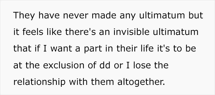 Today, we dive into a story where a man showed that when push comes to shove, he can defend his wife over his family. To start from the beginning, the poster explained that when both her daughter and son lived at home, his girlfriend was a frequent visitor at their house. One day, she overheard her boyfriend’s sister mock her behind her back. Obviously hurt by it, the son left and the couple moved in together, and in the time that followed, they got married and even had a kid. Now, the poster didn’t attend the wedding as her daughter wasn’t included, and to date, her daughter-in-law wants nothing to do with the sister. The son has also backed up his wife, and his mom and sister have never met his kid because of this. When the mom tried to talk to her son, he outright refused to mend things with his sister and has never even visited the poster since, as she would be there. He also confided in his mom that she should be on his side as the daughter was in the wrong, but the mom felt that the couple was “overreacting”. According to OP, the daughter had indeed said something unkind, but didn’t deserve to be cut off; however, it’s important to note that nowhere in the story did she mention what exactly her daughter had said. Even the folks online latched on to this fact and said that they wanted to know about it. The couple had invited the family, excluding the sister, and this had devastated her. The poster feels like there’s an invisible ultimatum that if they want her to be part of their life, she has to exclude her daughter or lose the relationship with them. She claims that she’s choosing her daughter over her daughter-in-law, but her son feels that she’s choosing his sister over him. Share icon Image credits: joyce huis / Unsplash (not the actual photo) After the story went online, it didn’t take long for netizens to declare that the mom was simply favoring the daughter, who was the ‘golden child’ of the family. It has been observed that disfavored children can experience bad outcomes like depression, greater aggressiveness, and lower self-esteem. If this disfavoring has been going on since childhood, the son must surely be affected by it. People couldn’t believe that the poster was missing out on all the important events in her son’s life just because he didn’t want to involve his sister in it. They even felt that the daughter could do anything and get away with it because of the mom. People questioned what it was the daughter had said and whether she had apologized for it. The poster said nothing about the mockery, but she did mention that the couple refused to even see her, so she couldn’t apologize. They felt that she must have said something really cruel and insulting for the couple to react this way, and to be honest, nobody wants to be insulted by their partner’s family. According to Marriage.com, “Toxic in-laws often engage in gossip, spreading rumors or talking negatively about you behind your back. This can lead to feelings of betrayal and mistrust as you realize that your in-laws undermine you and your relationships.” It seems like folks were rightly concerned about how overhearing what the sister said might have adversely impacted the wife. Apart from everything else, what really warmed people’s hearts was the fact that the man chose to stand by his wife and respect her decision. Someone commented that this was very rare and it was actually a delight to read something different for a change. Even we felt that this was a lesson for people to stand up for their partner against a toxic family. Wouldn’t you agree? Also, what did you make of the whole situation? Jot down your thoughts in the comments!
