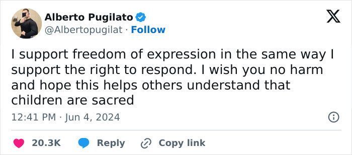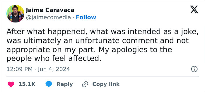 — Wall Street Wolverine (@wallstwolverine) June 3, 2024 Video credits: wallstreetwolverine The musician’s prediction had proved accurate. Caravaca posted his apology shortly after the incident. “After what happened, what was intended as a joke, was ultimately an unfortunate comment and not appropriate on my part. My apologies to the people who feel affected.” The father replied with his acceptance of the apology. “I support freedom of expression in the same way I support the right to respond. I wish you no harm and hope this helps others understand that children are sacred.” Though the police were called to the theater, they did not arrest Pugilato because Caravaca declined to press charges.