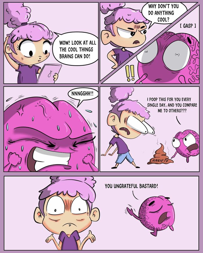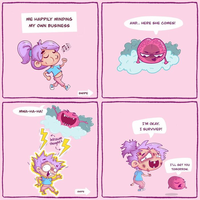 Gabs has always loved to draw, and these comics became her way of writing about her feelings and experiences with a mix of seriousness and humor. “Buga Boo Monkey Comics” are special because they make people laugh and think, showing the ups and downs of dealing with things like anxiety and depression. Gabs’ work connects with many people because it’s honest and fun, making tough topics easier to talk about. Through her comics, she shows how art can help with personal struggles, offering hope and understanding to others facing similar issues. More info: Instagram The artist started by describing the therapeutic impact of her work: “Drawing these comics has been a cathartic act for me. They have been a mirror that reflects my thoughts and transform something overwhelming into a fun-sized challenge I can tackle.” She recalled a specific instance from June 23, 2021, explaining, “I hand my brain a teeny-weeny thought, and my brain – being the adorable drama queen it is – escalates it to a Broadway-level production. Sketching out the scene made me realize I am the director of this comedy, which allowed me to better understand my thoughts and laugh along with my imaginative plots.” Follow Bored Panda on Google News! Follow us on Flipboard.com/@boredpanda! Please use high-res photos without watermarks Ooops! Your image is too large, maximum file size is 8 MB.