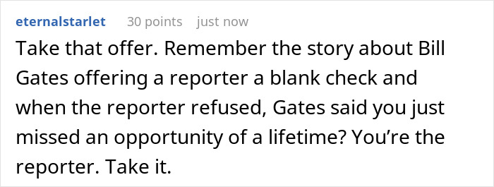 People in the comments shared their thoughts, they encouraged the OP to take the offer