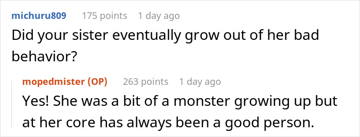 To give you an example, we have a story that one Redditor shared from his past. Even though the guy grew up in a supportive family, his parents were used to him always being compliant and would often take his spoiled sister’s side. However, one time, his sister took it too far, and he decided to stand his ground, which surprised everyone, including himself. Scroll down to read the full story! More info: Reddit
