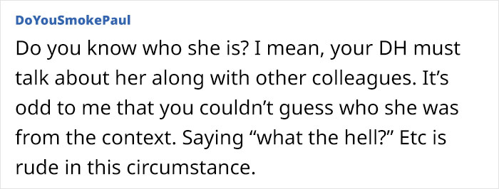 Internet user HeardOfCats took to the popular Mumsnet forum for advice after a very confusing moment at her husband’s work party. She shared how his colleague physically touched him and called herself his ‘work wife.’ Scroll down to read the full story and to see what the internet has to say about all of this. Bored Panda has reached out to the author via Mumsnet, and we’ll update the article as soon as we hear back from her.