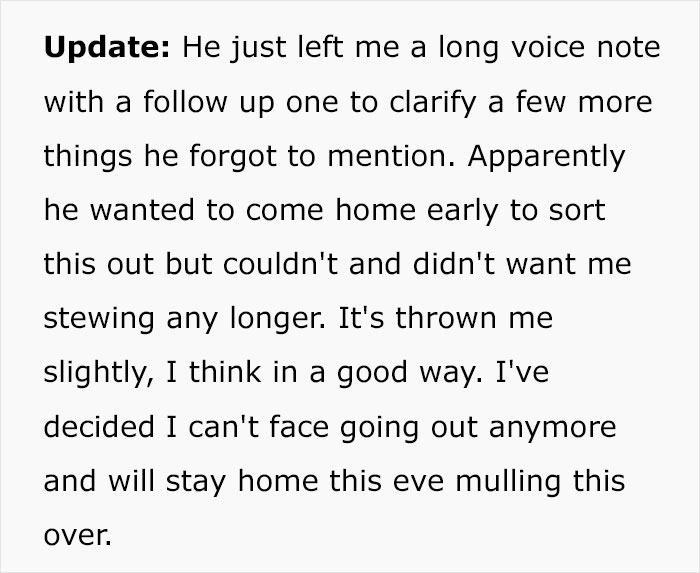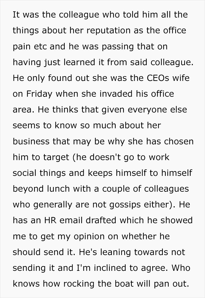 Share icon Share icon Share icon Share icon Image credits: Mario Gogh (Not the actual photo) The author later shared an important update about the “work wife.” As it turns out, the story runs deeper Share icon Share icon Share icon Share icon Image credits: Israel Andrade(Not the actual photo) Share icon Share icon Share icon Share icon Image credits: Redd F (Not the actual photo) Share icon Share icon Share icon Anyone can write on Bored Panda. Start writing! Follow Bored Panda on Google News! Follow us on Flipboard.com/@boredpanda!
