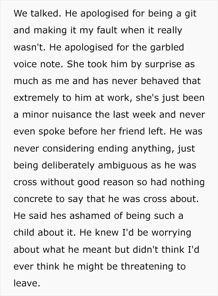 According to Forbes, over 60% of adults have had a workplace romance. 43% of those romances led to marriage. That said, 40% of them also involved someone cheating on their current partners. 57% of employees reported that workplace romantic relationships had a negative impact on their work performance. Meanwhile, 50% admitted that they’ve flirted with their coworkers. The core issue in this particular situation, described by HeardOfCats, seems to be related to boundaries. There’s nothing wrong with someone having friends at work. In fact, with the amount of time people spend at work day in and day out, not trying to create any friendly relationships would probably lead to a miserable time. It’s our strong, deep, long-term relationships that make us resilient to stress and keep us healthy, happy, and living longer. It only makes sense to consciously invest in them. But this shouldn’t be done at the detriment of the other deep relationships in your life, namely, what you’ve built up with your romantic partner over the years together. Share icon Image credits: Vitaly Gariev (Not the actual photo)