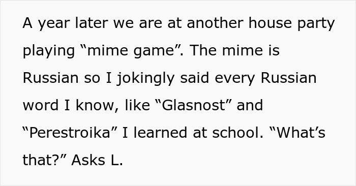 OP begins her story by telling the community that she lives in a diverse country and works with people of many nationalities. She goes on to add that, at a house party, an Iranian colleague, L, mentioned “Sputnik”, which prompted OP to ask him what it was. L acted with surprise that OP didn’t know and went on to loudly proclaim that Latinos are so self-centered and only learn about their own country. He then condescendingly asked her if she even knew what the Cold War was. OP tried in vain to explain that she knew what it was, that Latino education is more Eurocentric than she’d like, and that she just didn’t know what the name of the first satellite in the space race was, but L wouldn’t hear any of it. OP tried speaking to him in private a week later, but he brushed her off with another insult, this time regarding her knowledge of political history. OP goes on to share that, a year later, they were at another house party playing a mime game. OP’s prompt was “Russian”, so she jokingly blurted out every Russian phrase she knew. This time L was the confused one, prompting OP to basically repeat his rude outburst from the prior party to him. She concludes that L complained that she was a bad person who held a grudge for no reason, but OP says she didn’t care because it felt so good. L’s remarks about OP’s level of education with regards to her ethnicity were directly racist, and shouldn’t have been tolerated by anyone at the party, least of all OP. Her comeback was perfectly executed, however, and L was only unhappy because the tables were turned, and he didn’t have a leg to stand on. Share icon Image credits: Matheus Bertelli / Pexels (not the actual photo) In his article for The Conversation, professor of evolutionary ecology Rob Brooks writes that, over the last century, researchers studying race have found a dramatic drop in racist attitudes and stereotypes. According to Brooks, there is strong neuroscience evidence for what we have long known – that becoming familiar with individuals from other races as well as a conscious desire to transcend our prejudices can erode racism and other forms of bigotry. Brooks goes on to write that the brain – far from being hard-wired – is good at learning about race and triggering biases but is also capable of transcending those biases. And that’s a good thing, in evolutionary terms, because the groups we belong to shift and change over time. Our ability to change, then, is a crucial facet of our humanity. In his article for the BBC’s Science Focus, neuroscientist Dean Burnett writes that criticisms and rejection cause brain activity that’s indistinguishable from actual pain. Put plainly, insults do hurt. Insults are complex ideas that have been studied at length, and it turns out that the impact of an insult depends as much on the recipient as it does the supplier. There are several scientifically recognized methods to effectively diffuse insults or reverse their effects. One such method is ascribing category membership to the insulter; making the insulter seem like the lower-status, more easily ridiculed party. Others suggest finding a point that the insulter makes about themselves and amplifying it, such as belittling their lack of understanding. According to Burnett, there are endless comebacks, but they all orbit around a central idea of not giving the insulter power, of denying them elevated status and retaining control of the exchange or narrative. How would you have reacted if you’d been in OP’s shoes? Do you think her clap back was warranted? Let us know your opinion in the comments!