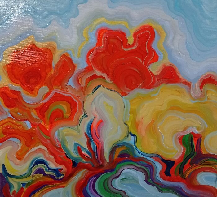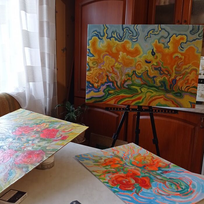 Lately, I’ve been delving into philosophical works, which has left me feeling a bit confused. Being in our hometown and experiencing the same events as everyone else in society, I’ve noticed that stress has affected my ability to logically organize my thoughts. Even my memory isn’t as sharp as it used to be. Despite this, I’ve been making an effort to read and listen to books, and I’ve been spending a lot of time with paints and canvases. This month, I’ve even experimented with painting on cardboard. Reflecting on Dante’s words, “Having passed through earthly life to the middle, I found myself in a gloomy forest,” I’ve found some inspiration in philosophy, but it’s been fleeting. I’ve struggled to retain what I’ve learned, which has been frustrating. Perhaps my insomnia and the nightly explosions in the distance have been taking a toll on my mind and psyche once again. I’ve experienced a similar state during intense combat situations, and I remember how I eventually returned to a more stable mental state. To combat this, I’ve been creating small, positive paintings with simple forms, like flowers. The paintings I’m sharing in this article are just a fraction of what I’ve created recently, but I hope to share more in the future. Next, I plan to delve into the theory of Stoicism, eager to explore how it might influence my creative reflections and expressions on canvas. It’s important to note that, despite my struggles, I haven’t lost touch with reality or allowed myself to spiral into madness. I’m maintaining enough control over the situation to keep a level head. I invite you to share your own stories or methods for coping with difficult situations in the comments section. I’m interested in hearing about your individual experiences and engaging in friendly dialogue. More info: saatchiart.com Follow Bored Panda on Google News! Follow us on Flipboard.com/@boredpanda! Please use high-res photos without watermarks Ooops! Your image is too large, maximum file size is 8 MB.