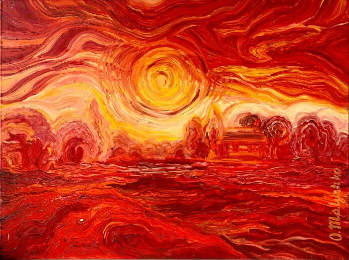 Certain limitations may have been an obstacle at the beginning of the war, but the inspiration did not leave. There are days, sometimes even Sundays, when exhaustion overcomes the psyche and you want nothing more than to sleep, sleep and sleep again. Sometimes it seems that the choice between paint and canvas is more important than food. Unable to create paintings in the studio, the artist paints them wherever possible, sometimes in the warmest room in the house. In the summer, she holds art plein airs with colleagues who have not left the country. Everyone is tired with slightly droopy eyes, but the hope for peace adds life to their expressions. We often hug when we meet our colleagues. No one knows whether we will see each other next time and when exactly we will have the opportunity. Drones often fly over the city, and there are frequent air raids and rocket explosions. More info: saatchiart.com Sometimes it seems that people are used to war, but this is not the case. And art itself is a mirror of the events we are experiencing together. Follow Bored Panda on Google News! Follow us on Flipboard.com/@boredpanda! Please use high-res photos without watermarks Ooops! Your image is too large, maximum file size is 8 MB.