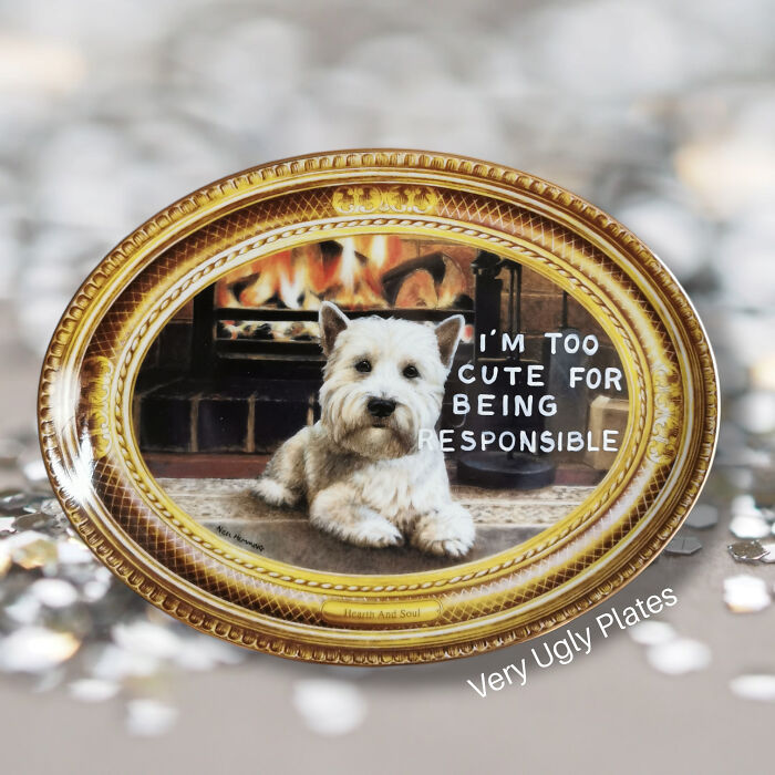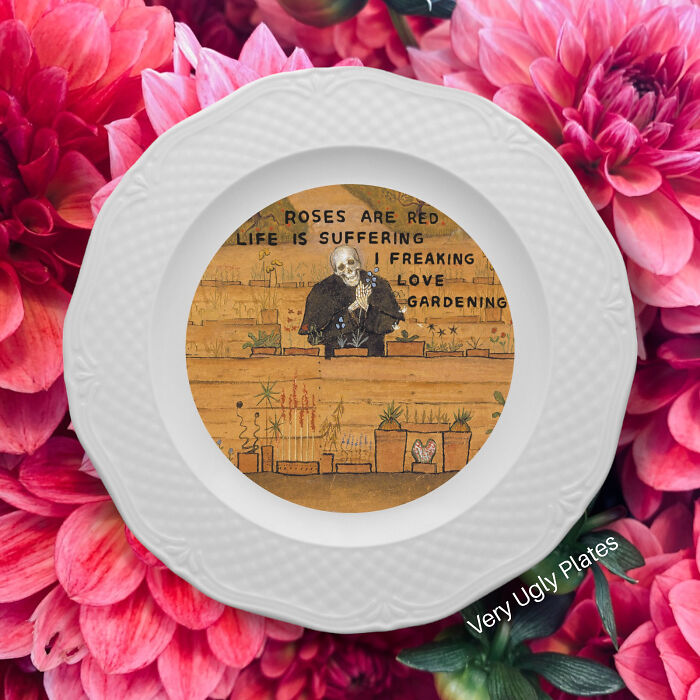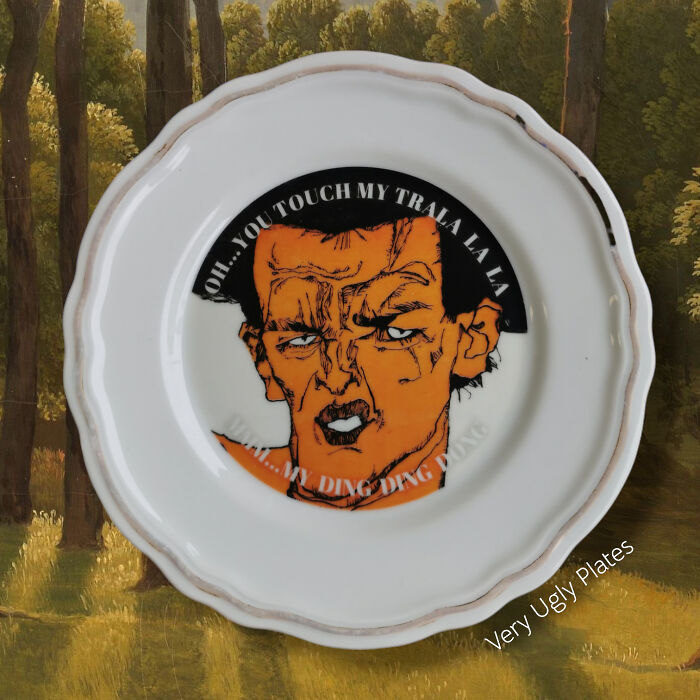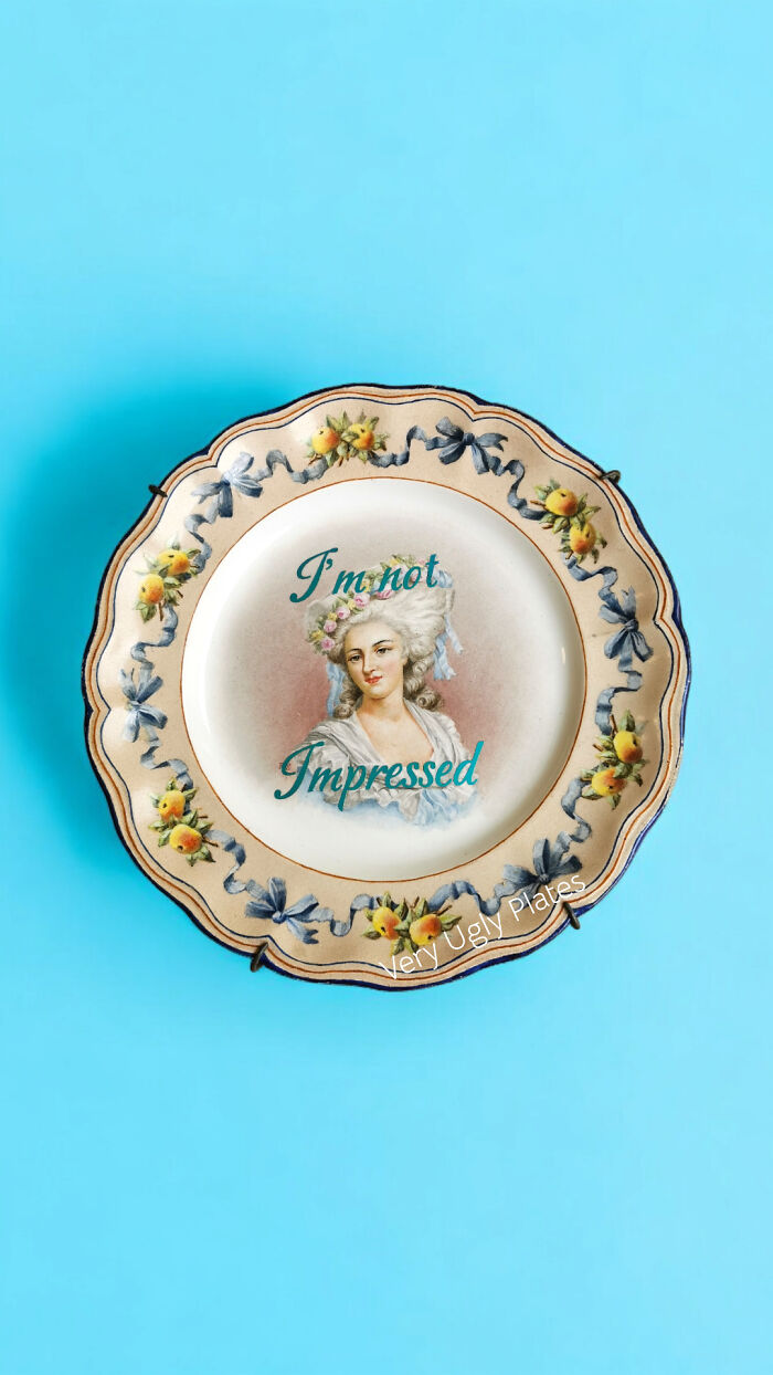 “Very Ugly Plates” is a celebration of the quirky and the unconventional, capturing the essence of modern humor through classical designs. Each plate features hilariously unexpected phrases juxtaposed with charming vintage imagery, creating a unique and unforgettable visual experience. From poking fun at everyday annoyances to delivering laugh-out-loud social commentary, Kamila’s work resonates with those who appreciate the art of not taking life too seriously. Join us as we delve into Kamila Majcher’s creative journey and explore the world of “Very Ugly Plates,” where every piece is a conversation starter and a testament to the beauty of humor in art. More info: veryuglyplates.de | Instagram Another type is vintage plates with nice decor, and the main criteria for them is that they must have enough space to make my design on them. Also, the type of porcelain and glaze is very important, as not all of them can survive the 900°C baking process. Once, I was participating in a market in Warsaw, and some person was passing by my stand and looked at my plates and said, ‘Disgusting,’ and walked away. That was cute. Follow Bored Panda on Google News! Follow us on Flipboard.com/@boredpanda! Please use high-res photos without watermarks Ooops! Your image is too large, maximum file size is 8 MB.