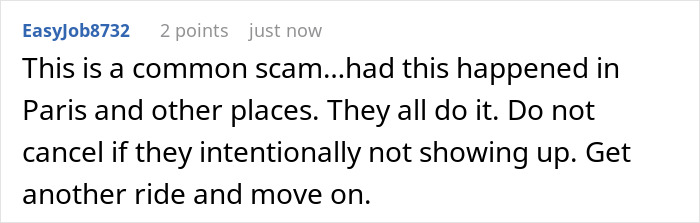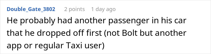 In a recent interview with Bored Panda, the OP shared that the thing that annoyed her the most was the fact that the driver accepted the trip without hesitation, knowing he wouldn’t come. “He didn’t stop to think of the consequences for the client. If I was in a hurry, I would have lost precious time until I noticed he wouldn’t come and then even more until another driver would show up,” she said. Though the redditor said that such situations are not that common despite her using the service rather often, she did recall another encounter with a driver who wasn’t that willing to… drive. “Most drivers are very punctual and professional and do not condone such behavior of others. But one time a driver was already in our view and suddenly declined our trip. “When the next driver arrived, he was livid because the first driver tried to dissuade others from coming, claiming that we had big luggage,” the OP continued. “The second driver said that our baggage was by no means extraordinary but rather that the previous driver was used to declining clients on a whim. This is where I learnt that drivers have a group chat. Though most drivers are amicable and open about the current policies, which I find forthcoming.” Discussing the reasons behind people’s growing interest in ridesharing services, the redditor pointed out that in her area, the cars are better taken care of than traditional taxis, and the drivers have a better attitude. “The costs are also more transparent for the client, and paying with a card is often no big issue; at least in my city.”