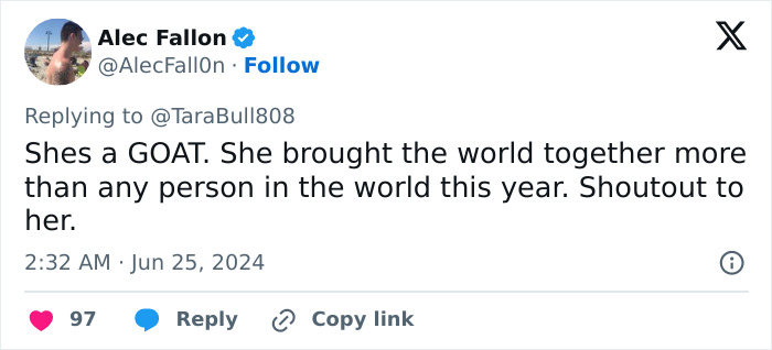 “She’s only getting hate because she’s free-spirited,” an X user wrote