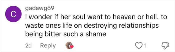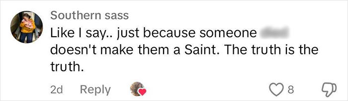 According to the writer from Maine, USA, the deceased woman left behind an antagonistic legacy