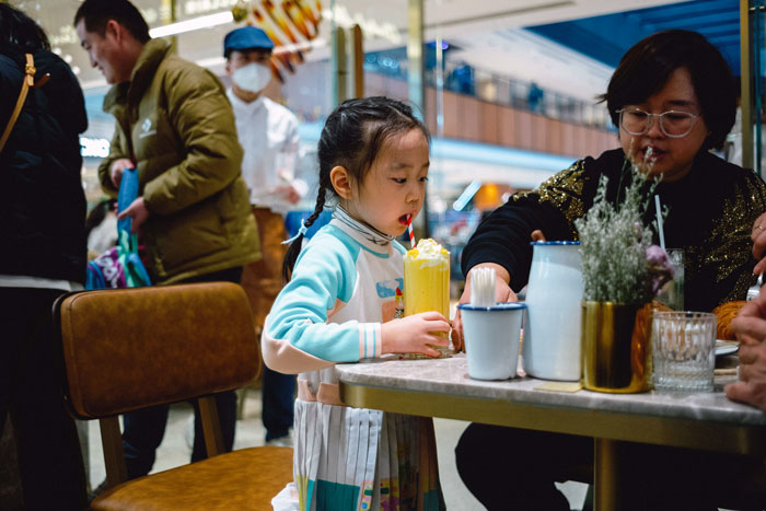 While they were waiting for their food, two women with a baby and a kid, who was probably between 7 to 10 years of age, entered the restaurant, and the kid started playing