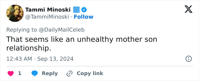 A post shared by Elizabeth Hurley (@elizabethhurley1) Viewers remained critical of the actress’ look, believing it wasn’t in accordance with the event and clashed with the outfits worn by other celebrities. “What a poor choice of a dress and cut way too low. Her legs and chest are too chunky for this style,” one wrote. “It would probably look better on Damien. He is slimmer and into the low cut look,” another joked. Share icon Image credits: TammiMinoski Some netizens also said they felt “weirded out,” by the closeness displayed by the mother-and-son pair. “Their relationship makes me feel queasy,” a reader stated. “Sometimes I get the feeling she is still breastfeeding that bloke. He just gives me the chills.” Hurley also recently became Maxim’s September/October cover Nº1 sexiest woman, where she posed proudly showing her feminine attributes while wearing an unbuttoned shirt with no bra, photographed on a beach backdrop. Anyone can write on Bored Panda. Start writing! Follow Bored Panda on Google News! Follow us on Flipboard.com/@boredpanda!