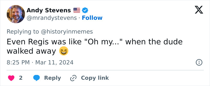 — Historic Vids (@historyinmemes) March 11, 2024 On March 11th of this year, the X account called “Historic Vids,” which is dedicated to historical memes, posted a video that soon went pretty viral. And the reason for its virality was how funny and frustrating the situation in it was. It was a video from a popular American TV game show, “Who Wants to Be a Millionaire?”, created in 1999 that based its format on the British game show of the same name. Probably the most well-known host of the American game was television presenter Regis Philbin, who sadly passed away in 2020 at the age of 88. The game is basically a quiz competition where contestants strive to answer a series of consecutive multiple-choice questions, which become increasingly difficult. Each question is worth a certain amount of money. If a wrong answer is given to even one question, the game is over, and the contestants’ winnings are reduced. Also, if the person isn’t sure about the answer, they can walk away after hearing the question and keep the money they have won up to that point. And that is what the video we have mentioned is about — a person walking away from a question. You might wonder, what’s so special about it if it’s part of the game’s rules? Well, the thing that made the video go viral is the question. Apparently, to many people online and on the page where the video was posted, the question seemed like a very simple one. The question was related to the Japanese media franchise Pokemon and J. R. R. Tolkien’s character Frodo Baggins. Well, we’re pretty sure you have heard of at least one of these because if not, you must be living under quite a big rock. The question didn’t even require extensive knowledge about either of the media franchises. In fact, it was kind of a basic one — to select which of the given names was not a Pokemon (the answer was Frodo). And for anyone who has basic knowledge of Pokemon or The Lord of the Rings, it’s pretty simple. Apparently, this man didn’t have such a knowledge. First, he chose to eliminate half of the options, but even after that, he didn’t know the answer. So, he chose to walk away with $250,000. This flabbergasted people online. To them, the answer seemed way too simple to walk away from. Some even said that it was the easiest 500K dollar question ever. Just as we said, if you have any basic knowledge of pop culture, it for sure seems this way. Folks online accused the man of not consuming any popular media at all, which, well, in the Internet’s eyes, is quite a crime. Especially when you lose a huge sum of money because of it. On the other hand, the first The Lord of the Rings movie was only released 2 years later, so it makes the man not knowing about Frodo a bit more understandable. After all, not everyone is a book person. This man’s name is Toby Moore, and he was a statistician from Tulsa, Oklahoma. The episode, in which Toby faced this “challenging” question, aired on November 17, 1999, in the first season of the game show. This year, it will have been 25 years since the episodes aired, which, apparently, makes it old enough to be on the X page meant for historical memes. So, if you’re born in that year, you have to deal with the fact that some might already consider you a historical entity. Kind of a hard pill to swallow, isn’t it? Just as it would be a hard pill to swallow if you lost out on a big sum of money just because you didn’t partake in the joys of Pokemon or The Lord of the Rings or forgot everything you know about them at a crucial moment. Share icon Image credits: Roo Reynolds (not the actual photo) To talk a bit more broadly about the legal side of game shows, Bored Panda reached out to a media and entertainment lawyer, Kelsey Farish. When people decide to participate in TV game shows, they become subject to various legal rights and responsibilities, which are usually signed in the contract before the show and can differ depending on jurisdiction. According to Kelsey Farish, with these contracts, the contestants are usually entitled to these rights: