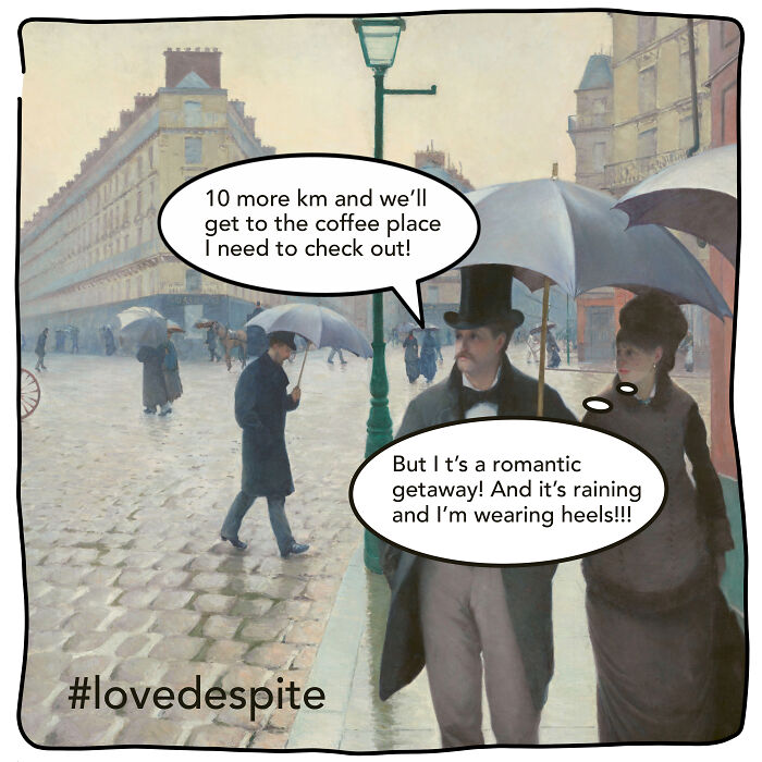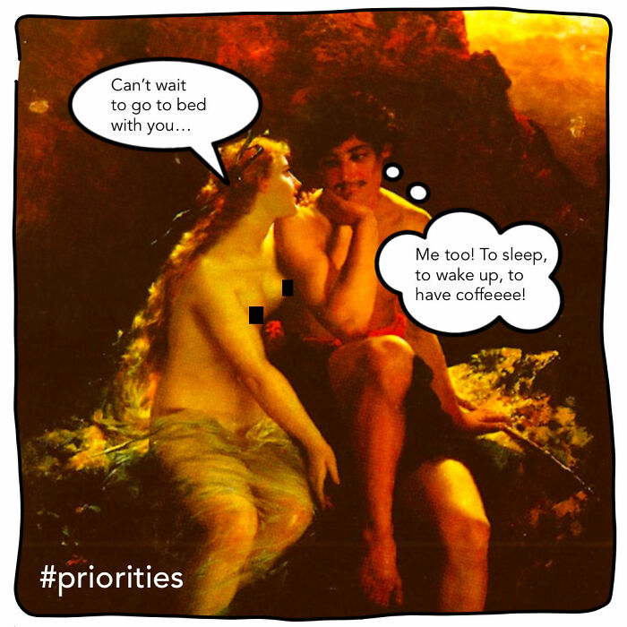 What’s a girl to do, other than create an Instagram account dedicated to humoring his coffee obsession and snobbery? Forgive my obvious sarcasm—it comes from desperation. It’s difficult to compete with his love for coffee. I think my suffering deserves some wider recognition. I’ve put together some memes based on classical paintings, but there are more on my Instagram. More info: Instagram Follow Bored Panda on Google News! Follow us on Flipboard.com/@boredpanda! Please use high-res photos without watermarks Ooops! Your image is too large, maximum file size is 8 MB.