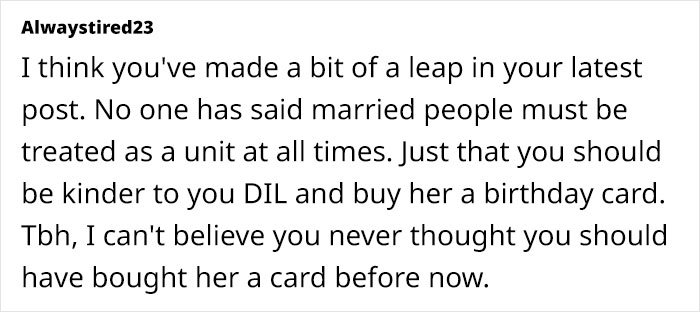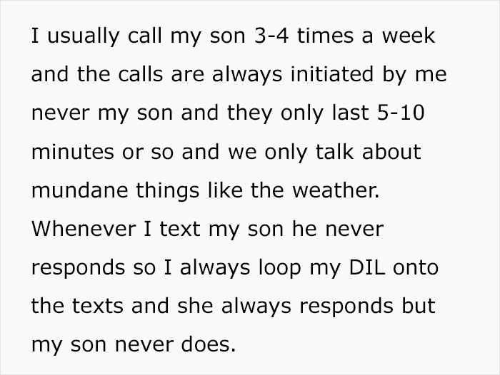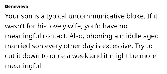 Alas, it’s easier said than done! I mean, just look at the original poster (OP), who was so blinded by how her son was the one at fault and didn’t really care about her, but she conveniently put the blame on her daughter-in-law who was simply trying to include her in everything. More info: Mumsnet