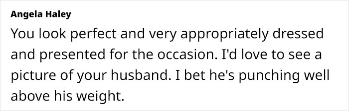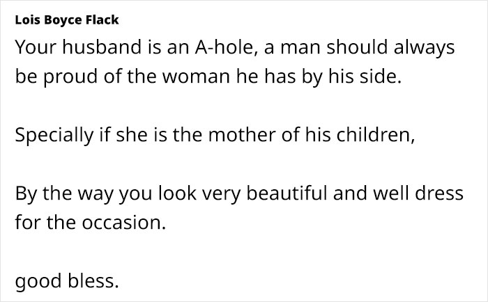 People in the comments gave the woman their warmest support, telling her that her husband was being incredibly rude and inappropriate here