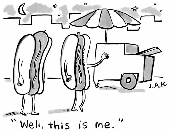 From a young age, Katzenstein loved to draw, and his parents always supported his passion. Now, he finds inspiration in his own life and the world around him, turning his experiences into cartoons that everyone can relate to. Scroll down for some fun and giggles! More info: Instagram | jasonadamkatzenstein.com Katzenstein begins by thinking about what has been true for him that week or what is happening in the world. “I need to start with something true. What’s on my mind this week? What’s happening out in the world? From there I try and marry my specific experience to universal touchstones. " Then, the artist tries to link his personal experiences to things everyone can relate to. Follow Bored Panda on Google News! Follow us on Flipboard.com/@boredpanda! Please use high-res photos without watermarks Ooops! Your image is too large, maximum file size is 8 MB.