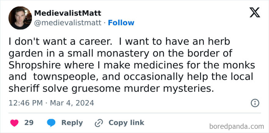 The “Medievalist Matt” Instagram page is dedicated to everything from interesting facts to hilarious and relatable memes. We got in touch with its admin and creator, Matthew Ponesse, Professor of History at Ohio Dominican University, to learn more. So get comfortable as you scroll through, upvote your favorites and be sure to share your own thoughts in the comments section below. “I think humor is the main attraction. There is so much stress and anxiety in our daily lives. I think my page offers a bit of relief from the daily challenges that we all face. Secondly, the nature of communication has changed drastically in the last decade. People value memes not only as a source of entertainment, but for how they respond to current events or social phenomena.”