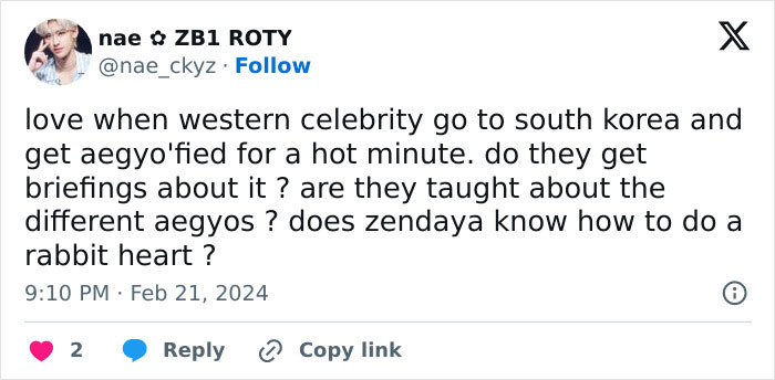 Zendaya, Timothée Chalamet, and Austin Butler displayed aegyo, an essential part of South Korean culture that refers to cute, adorable gestures or speech intonation