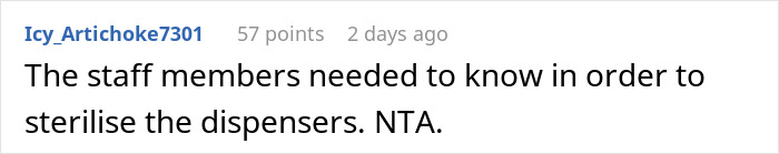 Well, after seeing a kid basically licking public sauce dispensers’ nozzles, today’s OP decided to inform the store’s staff so they could get it cleaned. But it very quickly turned into a public dispute between the author and the unhygienic kid’s family, which prompted the original poster’s question about whether they did the right thing by reporting the kid. More info: Reddit