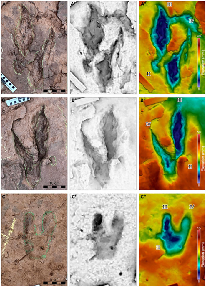 Share icon Image credits: iscience Raptor footprints are easily identified because the predators had four claws on each foot: two load-bearing claws, a larger claw, and a smaller one. The other prints found in Fujian are thought to have belonged to a smaller, 1-meter velociraptor.