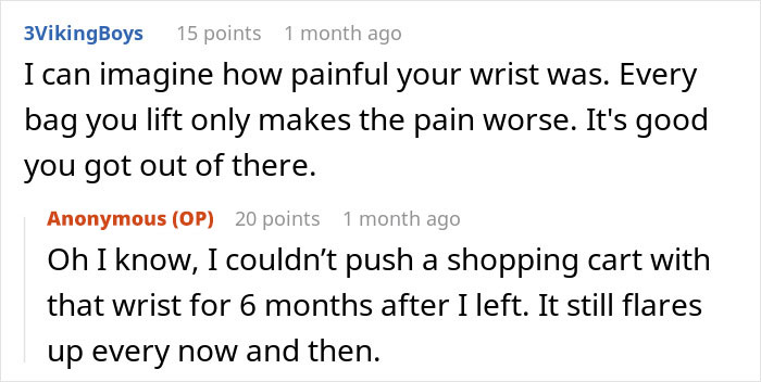 However, this manager completely dismissed a worker when they suffered a wrist injury at work