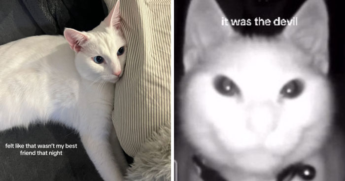Pet parents on TikTok have recently been sharing adorable pictures of their little ones next to pics of them looking “like the devil,” so we’ve gathered some of the funniest examples down below. Enjoy scrolling through these photos, and be sure to upvote the ones that you think have Jekyll and Hyde level transformations! But in the middle of the night, when I wake up to a paw on my face or someone crawling on my back, I’m terrified to open my eyes. Because if I do, I’ll see what appears to be a tiny alien that has broken into my home. So I can definitely relate to this “that wasn’t my best friend that night, it was the devil” trend. There’s no question that these pets are cute and deserve the world, but they’re also capable of giving humans a horrible fright when they feel like it. But just because an animal appears a little frightening doesn’t mean they’re actually unfriendly. I’ve heard many cat owners say that the friendliest looking cats are often the ones who like humans the least, and the weirdest cats are sometimes the friendliest. Of course, that’s not always the case. But we shouldn’t judge a book by its cover! Follow Bored Panda on Google News! Follow us on Flipboard.com/@boredpanda! Please use high-res photos without watermarks Ooops! Your image is too large, maximum file size is 8 MB.